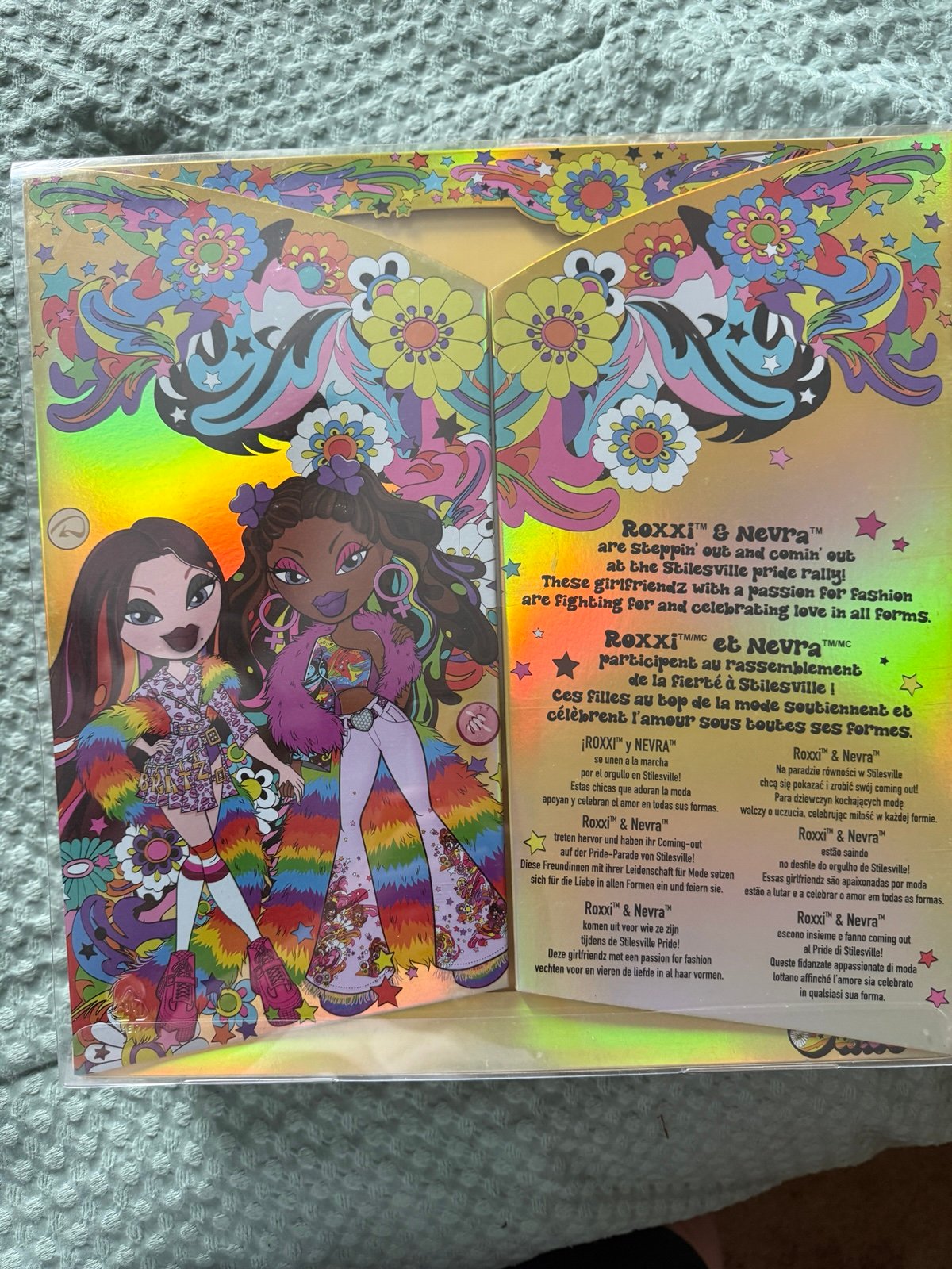 For sale is the limited edition Bratz Pride x JimmyPaul 2-Pack, featuring iconic Bratz characters Roxy and Nevra in celebration of inclusivity, love, and self-expression. This special collector’s set was designed in collaboration with Dutch designer JimmyPaul, making it a standout piece for both Bratz fans and Pride collectors.